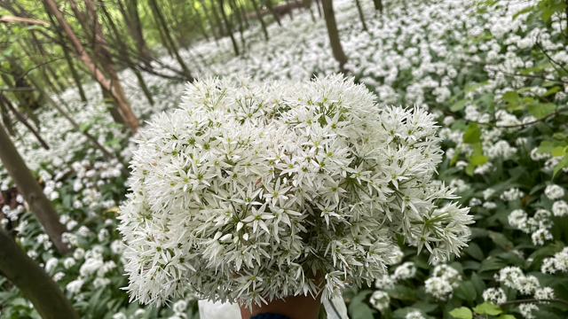Wenn er wächst, sollte man ihn reichlich essen – Blätter, Knospen, Blüten, Samen, Knollen, alles ist essbar. Zum Beispiel als Pesto, in Butter, Quark, Gemüsepfanne oder Suppe. Am wirkstoffreichsten ist er frisch zubereitet. Kurzes Kochen macht ihn aber für viele bekömmlicher und milder. Auch die Blüten kann man entweder direkt im Wald naschen, aufs Butterbrot streuen oder damit den Salat verzieren. Anders als beim Knoblauch aber, muss man sich beim Bärlauch keine Sorgen um eine „Fahne“ machen.
